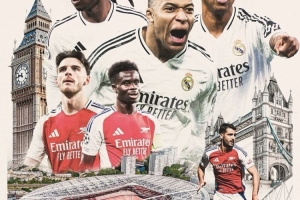 体育资讯4月8日讯 北京时间4月9日凌晨3点,欧冠1/4决赛首回合,皇马客场挑战阿森纳。 赛前,皇马官方社媒发布了为此役制作的海报,姆巴佩、卡马文加、罗德里戈三人出镜在酋长球场上空,其中伦敦大笨钟赫然在侧。...